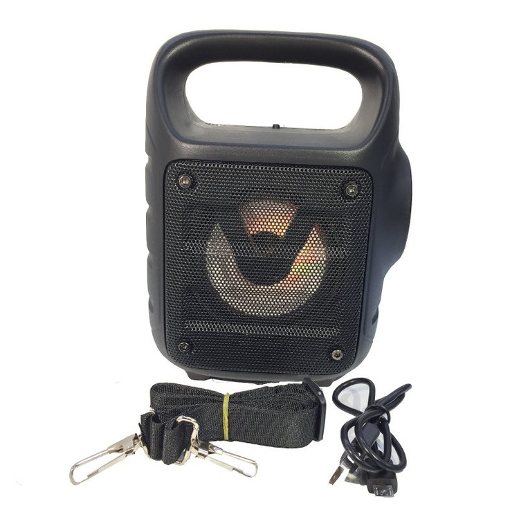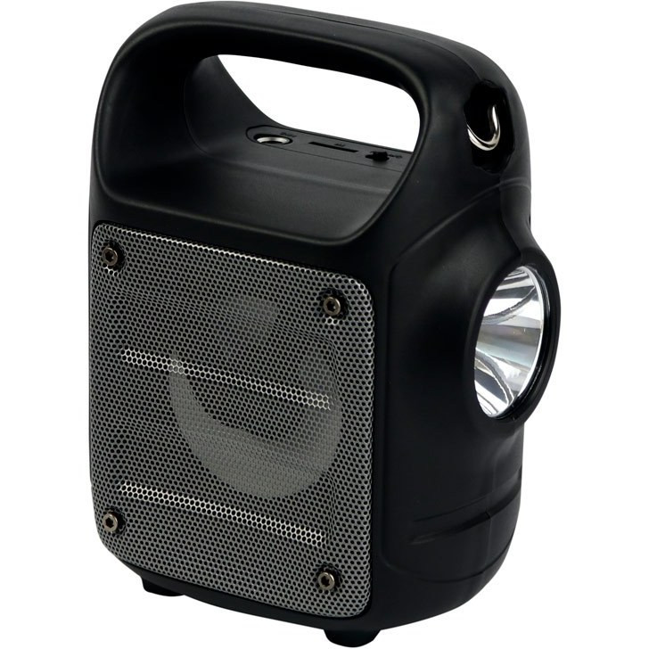 این اسپیکر مجهز به چراغ LED قوی دارای سه حالت زیاد- متوسط و چشمک زن میباشد که از این اسپیکر قابل حمل میتوان به عنوان چراغ شارژی نیز استفاده نمود.