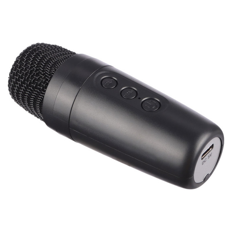 در کنار این اسپیکر یک میکروفون بی سیم شارژی موجود است که در هنگام پخش موسیقی میتوانید از آن استفاده کنید.