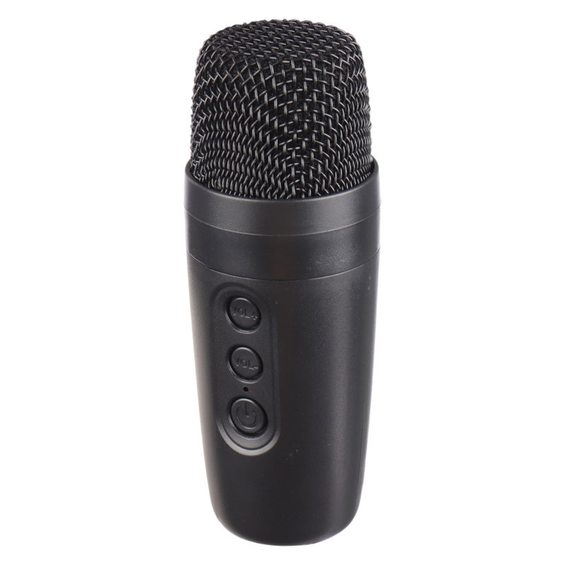 در کنار این اسپیکر یک میکروفون بی سیم شارژی موجود است که در هنگام پخش موسیقی میتوانید از آن استفاده کنید.