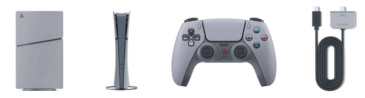 آنچه این نسخه را متمایز میکند، طراحی ظاهری و محتویات ویژهی همراه آن است. سونی با دقت و ظرافت، رنگبندی و المانهای طراحی اولین پلیاستیشن را روی بدنهی مدرن PS5 Slim پیاده کرده است. پنلهای بیرونی کنسول به رنگ خاکستری روشنتر و بدنهی داخلی به رنگ خاکستری تیرهتر درآمدهاند که کاملا یادآور کنسول کلاسیک ۱۹۹۴ است. لوگوی اصلی و چهار رنگ پلیاستیشن نیز به زیبایی روی بدنهی کنسول نقش بسته است. علاوه بر این، لوگوی ویژهی سیامین سالگرد پلیاستیشن در پشت کنسول و همچنین به صورت یک الگوی برجستهی ظریف روی سطوح داخلی پنلها حک شده است. این توجه به جزئیات در لوازم جانبی همراه نیز دیده میشود. باندل PS5 Slim Digital Edition 30th Anniversary شامل یک دستهی بیسیم DualSense با همین ترکیب رنگ خاکستری، لوگوی چهار رنگ پلیاستیشن و الگوی برجستهی سیامین سالگرد است. کابل شارژ USB-C همراه دسته نیز دارای یک پوشش ضخیم در بخش اتصال است که شبیه به کانکتور کابلهای دستههای اصلی پلیاستیشن طراحی شده و حس نوستالژی را تکمیل میکند. برخلاف مدل استاندارد اسلیم، پایهی عمودی (Vertical Stand) با رنگ خاکستری هماهنگ، در این باندل وجود دارد. از دیگر آیتمهای کلکسیونی همراه این نسخه میتوان به چهار بست کابل لاستیکی به شکل دکمههای معروف پلیاستیشن (دایره، ضربدر، مربع، مثلث)، یک برچسب پلیاستیشن، یک گیرهی کاغذ با طرح پلیاستیشن و یک پوستر ویژه و محدود (یکی از ۳۰ طرح ممکن) اشاره کرد. بستهبندی کنسول نیز با طراحی خاصی که یادآور جعبهی اصلی پلیاستیشن است، عرضه میشود.