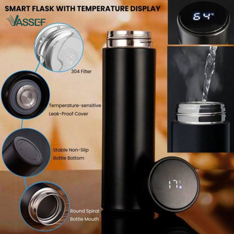 فلاسکهایی که در حال حاضر در دنیای امروزه وجود دارد علاوه بر جنس بدنه که از شیشه نیستند و دوام بالاتری در مقابل ضربه دارند هوشمند بوده و میتوان به راحتی دمای محلول درون آن را مشاهده کرد. موقع کوهنوردی، سفر و... به همراه داشتن آب سرد یا گرم به شرط این که دمای آب تغییر نکند لازم است. فلاسک دماسنج دار با طراحی هوشمندانه و دارای سنسور دمای هوشمند برای اندازه گیری دما است که به راحتی میتوانید با ضربه زدن روی صفحه LCD آن از داغ بودن یا سرد بودن محتوای فلاسک باخبر شوید. داخل این فلاسک یک صافی استیل قرار دارد که مانع مخلوط شدن دمنوش گیاهی و چای با آب می شود و شما به راحتی میتوانید توری یا صافی را از لیوان دمنوش ساز جدا کنید و بشورید. این محصول از جنس استیل بوده و درپوش آن پیچی است و قابلیت حفظ دما را دارد. صافی استیل این محصول بسیار با دوام بوده و باعث میشود تفاله چای و دمنوش مد نظر شما وارد لیوان شما نشود. درپوش این فلاسک پیچی بوده و نشتی ندارد.