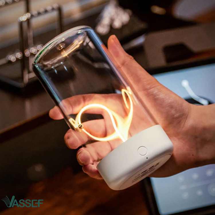 لامپ دکوراتیو رشته ای نخی Decorative Lighting یک چراغ خواب فوق العاده برای اتاق منزل یا یک وسیله بسیار جذاب برای فضا سازی دکوراسیون منزل یا میز کار شما می باشد، و این موضوع به دلیل طراحی ویژه این محصول است. این لامپ از یک حباب استوانه ای و یک لامپ رشته ای تشکیل شده است، این رشته به بخش پایینی (که مجهز به یک باتری قدرتمند و یک دکمه روشن و خاموش است) متصل شده و به دلیل داشتن ساختاری منعطف، به صورت کاملا معلق درون حباب حرکت می کند. اما نکته جذابی که در مورد این لامپ وجود دارد، امکان صاف ایستادن رشته لامپ با استفاده از مگنت نصب شده در انتهای آن می باشد، به این صورت که اگر مگنت در نزدیک برآمدگی بخش بالایی حباب قرار بگیرد، لامپ در راستای حباب استوانه ای به صورت صاف خواهد ایستاد، و در غیر این صورت رشته درون حباب معلق خواهد ماند. برای رساندن مگنت به بخش بالای حباب تنها کافیست استوانه را چند بار تکان دهید. این محصول با داشتن باتری قدرتمند ساعتی با یک بار شارژ کامل تا 14 ساعت روشنایی را در اختیار شما قرار می دهد. شیشه حباب استوانه از مقاومت بالایی در برابر خط و خش برخوردار است و در مجموع به دلیل استفاده از پلاستیک و مواد پلیمری برآیند وزن محصول بسیار پایین می باشد لامپ رشته ای LED این محصول نور ملایمی را می تاباند و از طریق سنسور لمسی می توان شدت تابش آن را در سه وضعیت تنظیم کرد.